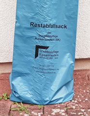 Der Sack hat ein Volumen von etwa 70 Litern und kostet pro Stück 5,- Euro. Zur Abholung können Sie den gefüllten Restmüllsack einfach am nächsten Abfuhrtermin neben den Restabfallbehälter bereitstellen.